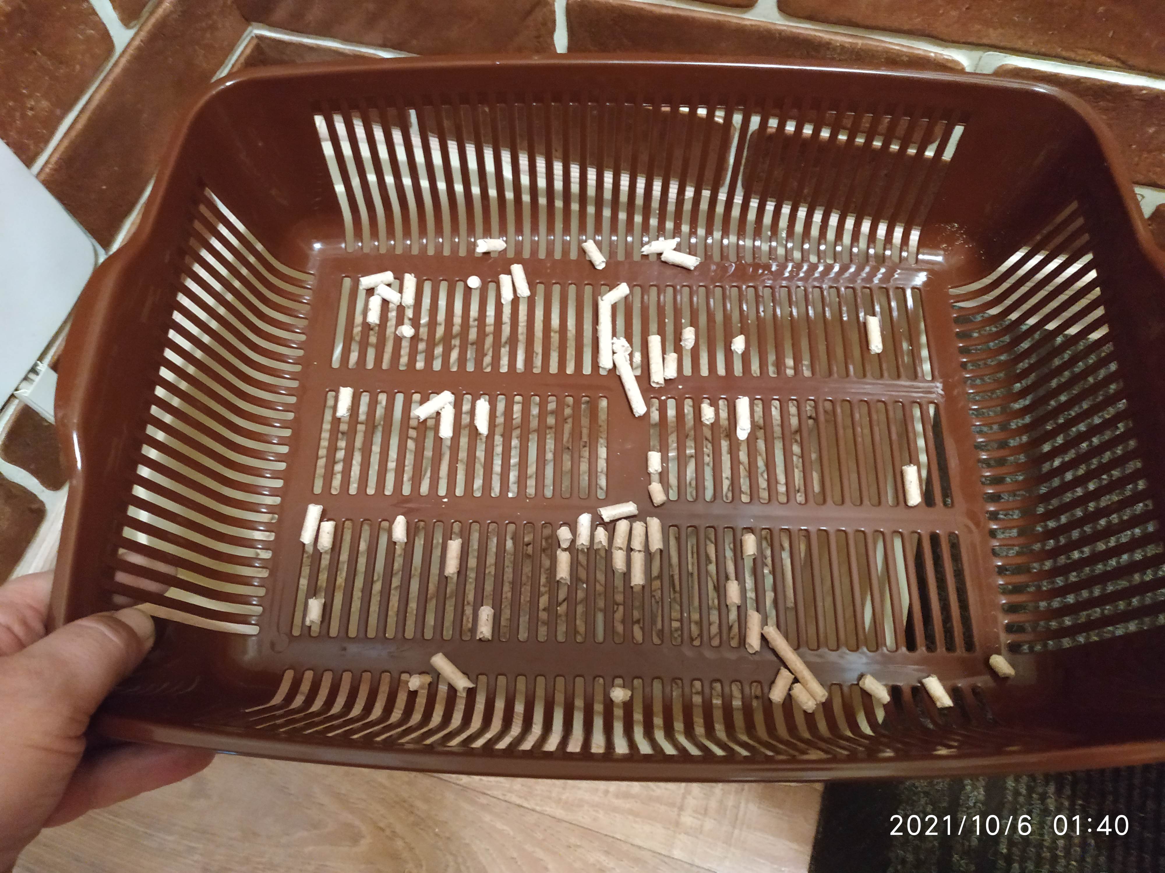 У сеточки широкие прорези, и когда ходит в туалет, то кот не пачкается и все уходит в поддон.